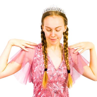 Petunia’s tale has three layers which can be consumed equally well in tandem or independently. The first layer features whimsical illustrations of Petunia in a variety of settings. Beginning in her bedroom, attentive readers will recognize details which foreshadow later events in the narrative. Second is the text itself, written for a young elementary school-aged audience because of its length. Important words are presented in different fonts and styles to draw attention to them, and the story often addresses readers directly. Third is the movement section, which explains motions that correspond to events or objects found on that page in the story. These descriptions are accompanied by photographs of Ballerina Konora—dressed as a princess herself—demonstrating the actions.